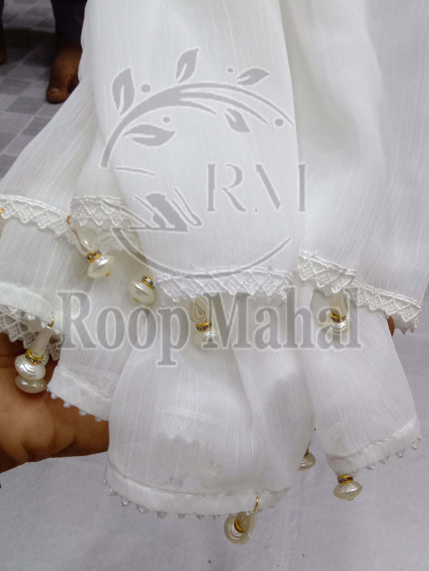 Crincle Chiffon Pearl Moti Lace Dupatta for girl and ladies by roopmahal.pk