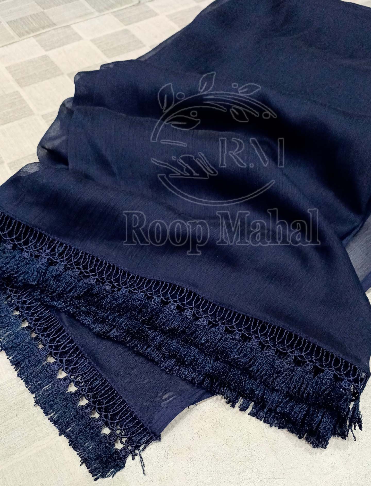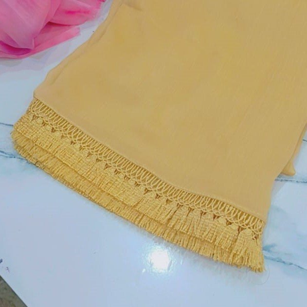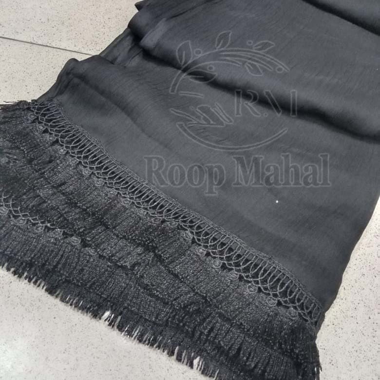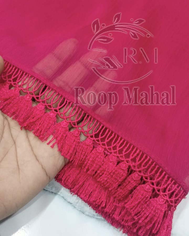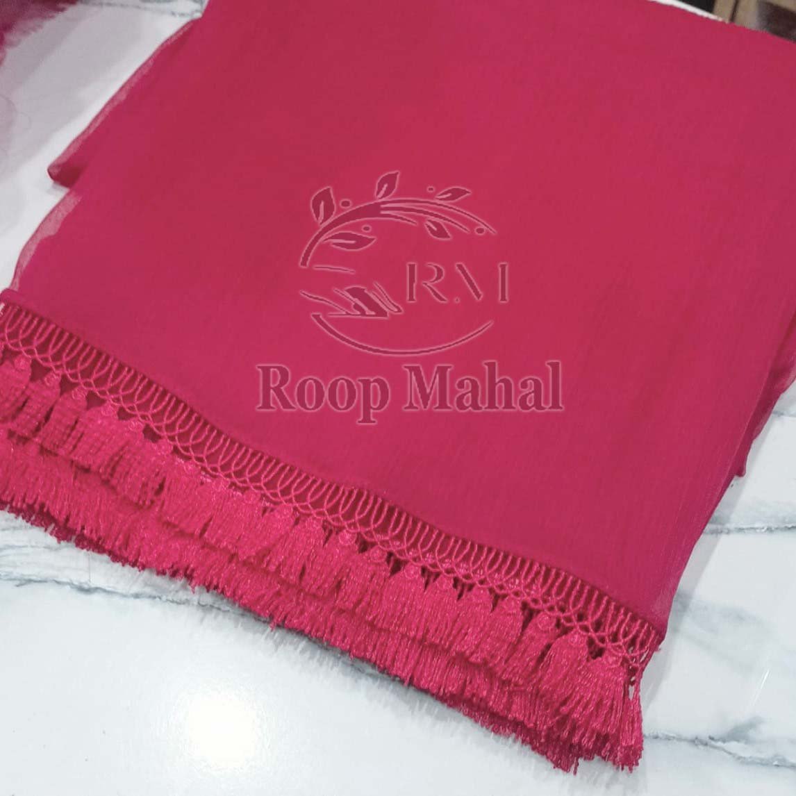 Crinkle Chiffon Dupatta with Tassel Lace for Girls & Women | Roopmahal.pk