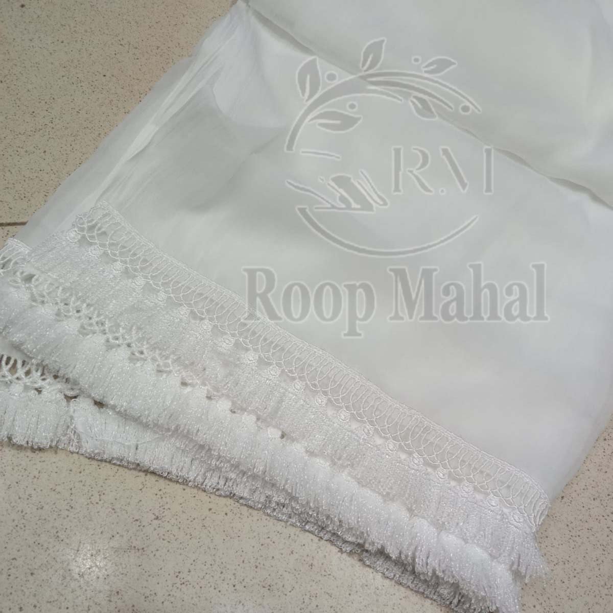 Cotton Net Dupatta – 2 Side Tassel Lace | Roop Mahal Dupatta