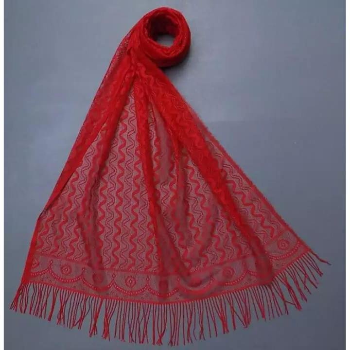 Crinkle Chiffon Dupatta with Tassel Lace for Girls & Women | Roopmahal.pk
